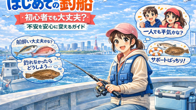 はじめて釣船に乗る方が感じやすい不安や疑問を、初心者目線でやさしく解説。一人参加や女性参加、船の雰囲気など、安心して釣船デビューするための心得をまとめました。