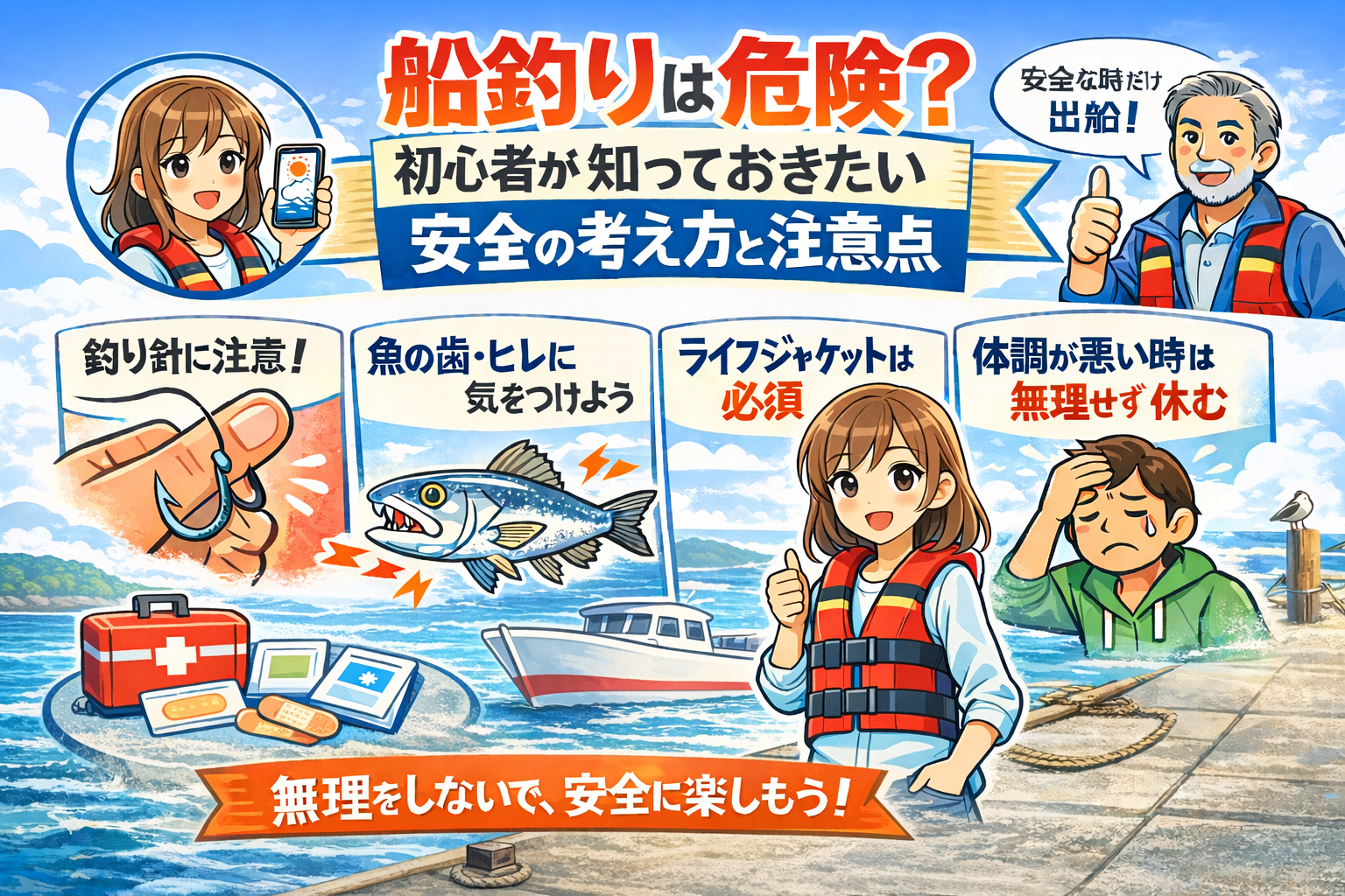 船釣りは危険?初心者向けに、よくあるケガや注意点、装備、安全に参加するための判断基準を解説。体調管理やキャンセル判断も含めて、安心して船釣りを楽しむための基礎知識をまとめました。